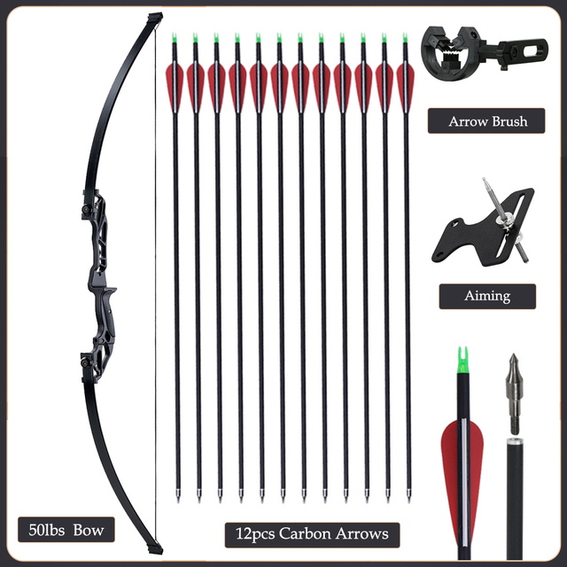 20/30/40/50lbs Archery Bow Recurve Take Down Straight Bow 12pcs Mixed Carbon Arrows Quiver Outdoor Sport Shooting Practice Bow