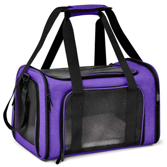 Carrier for Cat Pet Soft Transport Bag Foldable Dog Backpack 4 Open Doors Cat Ventilate Travel Bag Pet Supplies – Purple, 45x28x28(cm)