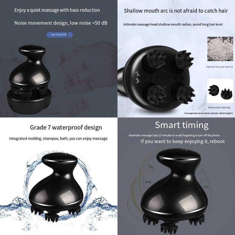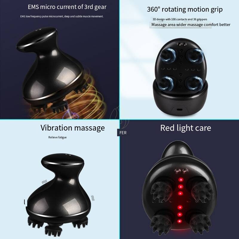 1PCS 2022 New EMS Micro-Current Head Massager Electric Kneading Vibration Waterproof USB Charging ABS Silicone Material SSJ203