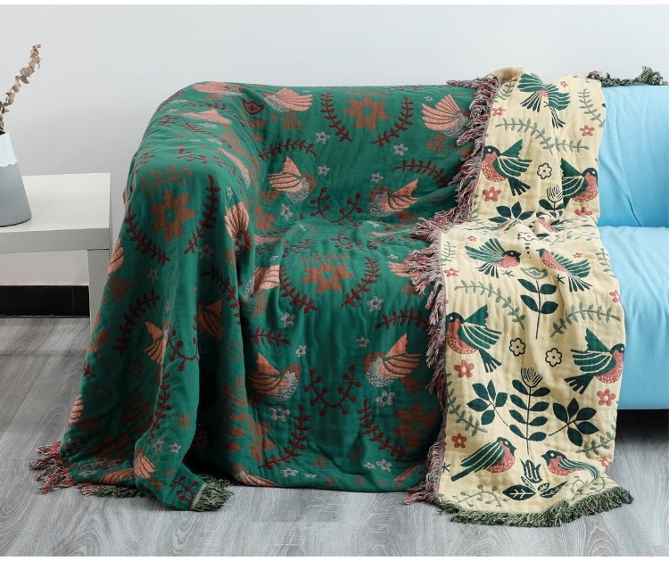 Junwell 100% Cotton Muslin Plaid Sofa Cover Summer Blanket Gauze Bed Chic Tassel Multifunction Travel Breathable Throw Blanket