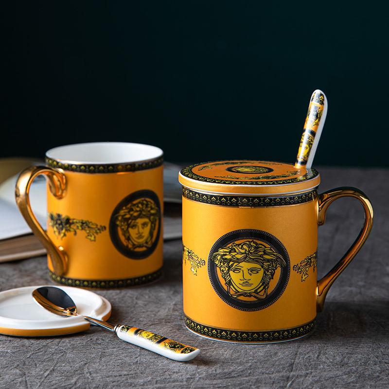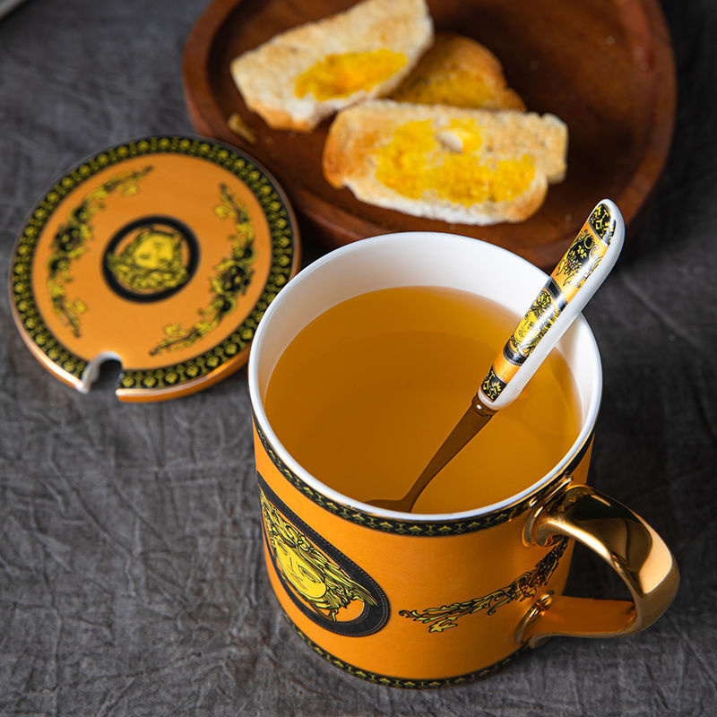 European Style Coffee Travel Mug Spoon With Cover Creative High Value Tea Cup Large Capacity Household Living Room Drinkware