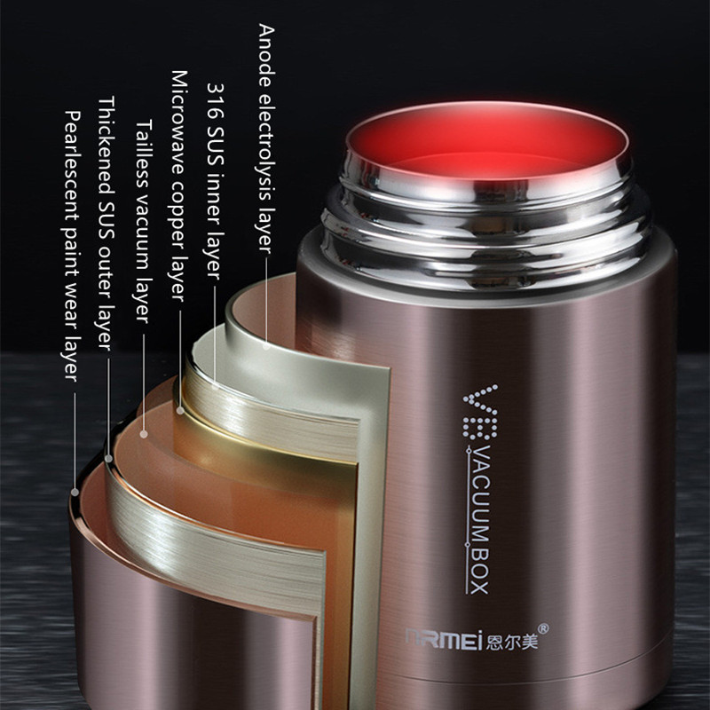 Food Thermal Jar Soup Gruel 316 Stainless Steel Vacuum Lunch Box Office Insulated Thermos Containers Spoon Bag 600/800/1000ML