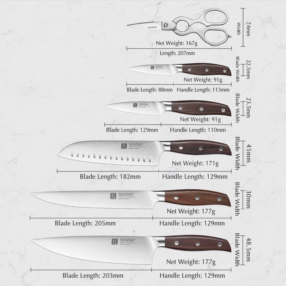 XINZUO Professional Full 7 PCS Knife Set German 1.4116 Stainless Steel Kitchen Knives Sets Best Kitchen Slicing Santoku Tool