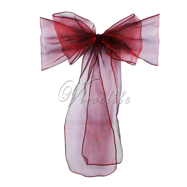 100pcs Chair Sashes Organza Chair Bows Wedding Party Supplies Christmas Valentines Decor Sheer Organza Fabric Chair Decoration – Burgundy