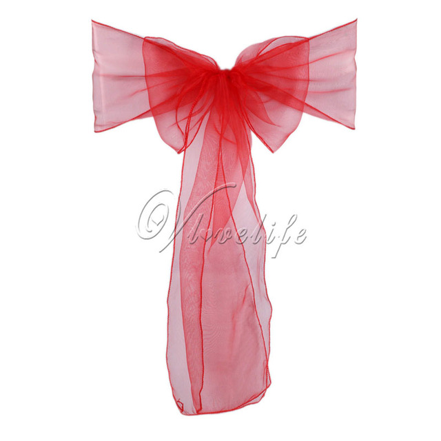 100pcs Chair Sashes Organza Chair Bows Wedding Party Supplies Christmas Valentines Decor Sheer Organza Fabric Chair Decoration – red