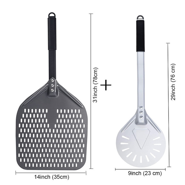 SHANGPEIXUAN 16/14/13/12 Inch Perforated Pizza Peel Rectangular Pizza Shovel Aluminum Hard Coating Pizza Peel Paddle Short Tool – 14inch and 9inch Set