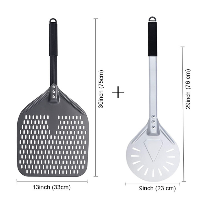 SHANGPEIXUAN 16/14/13/12 Inch Perforated Pizza Peel Rectangular Pizza Shovel Aluminum Hard Coating Pizza Peel Paddle Short Tool – 13inch and 9inch Set