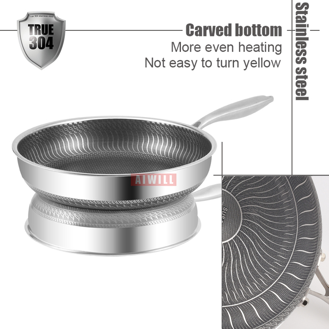 AIWILL Kitchen Quality 316 /304 Stainless Steel Frying Pan Nonstick Pan Cooking Fried Steak Pot Electromagnetic Furnace General