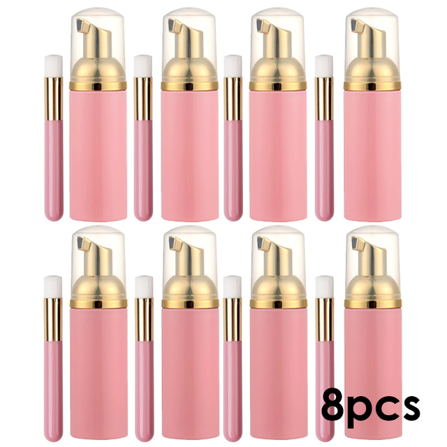 8 Set Eyelash Cleansing Mousse Shampoo 60ml Foam Cleanser with Brush for Lashes Extension Empty Logo Lash Accessories Wholesale – Pink Gold