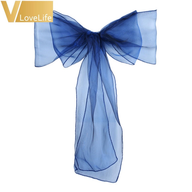 100pcs Chair Sashes Organza Chair Bows Wedding Party Supplies Christmas Valentines Decor Sheer Organza Fabric Chair Decoration – Navy Blue